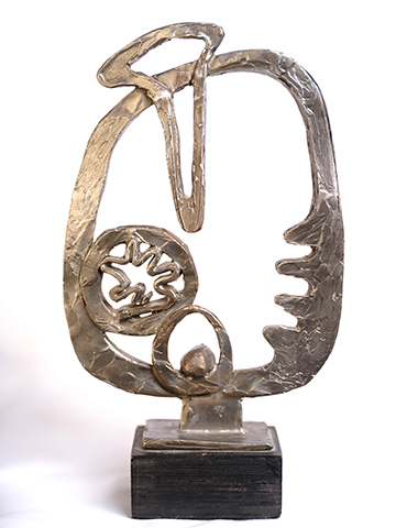 Remarks to the contemporary photos of works (around 1960): In addition to casts in bronze and lead, many of these works were made from wax, and some were crafted employing experimental techniques. For example, Sheppard dipped paper into molten wax to be able to sculpt it, and he also wrapped some of the figures with string. An immediate benefit of his work at the Natural History Museum was that he also had the opportunity to galvanize objects with copper plating and a patina so that they looked like bronze casts. He did this principally to keep the costs down before he could afford bronze casting. |