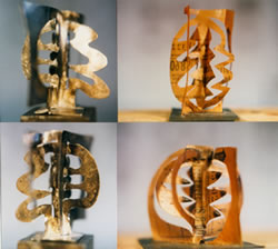 ANGELA VARGA KLEINE PAPIER- UND METALLPLASTIKENPapier, gewachst; Silber. Große Stahlplastik. 1990er. |