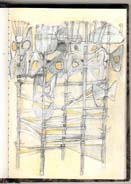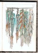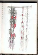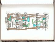 Skizzen zu großformatigen Stellbildern und Hängeplastiken 1990er.