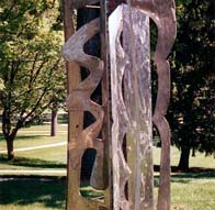entworfen und ausgeführt. Die Stahlplastik steht am Campus vor der